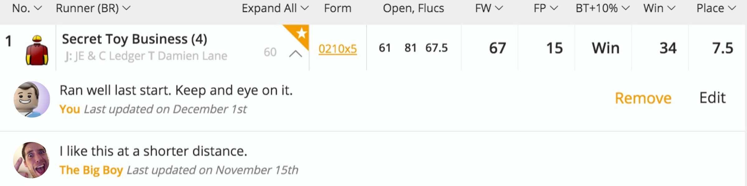Allow users to follow your favourite competitors (black books)