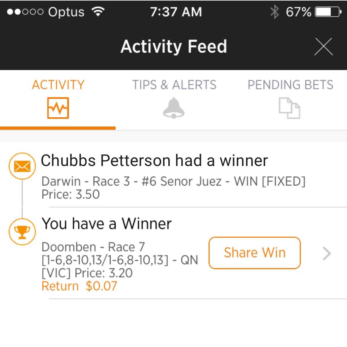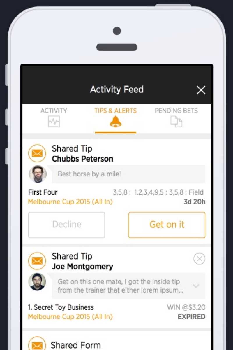 Allowing users to send and receive connection (friend) requests opened the door to sharing discrete bit of information. This includes tips, wins and racing form. Our research indicated that the online sports and racing betting experience is lacking a social aspect. Attending a race meet with friends and putting on a group quaddie, watching a footy game with a group of mates where all social activities. This provided an opportunity to take some of the social sharing elements online.