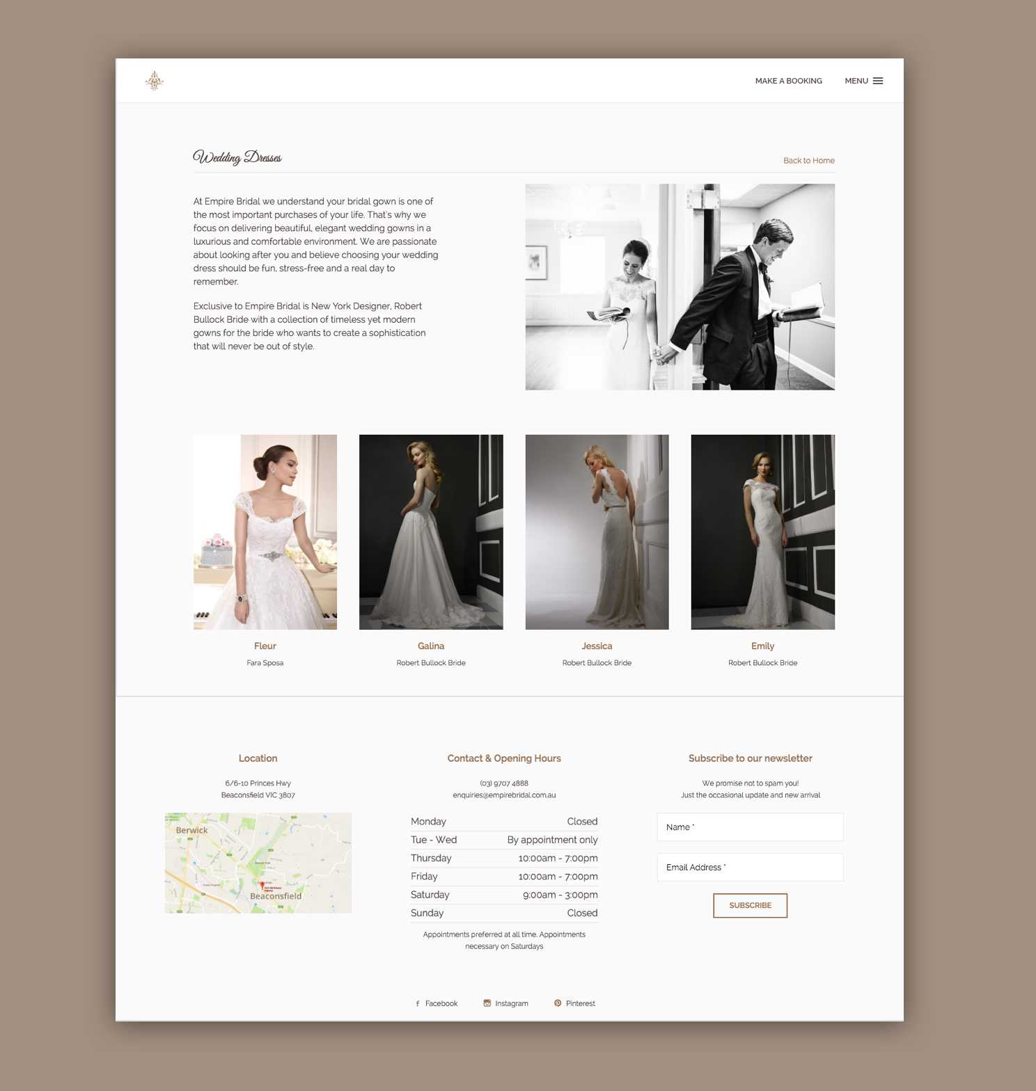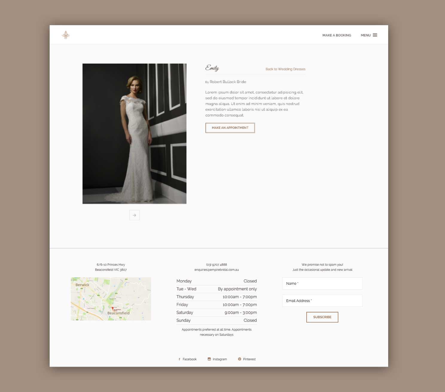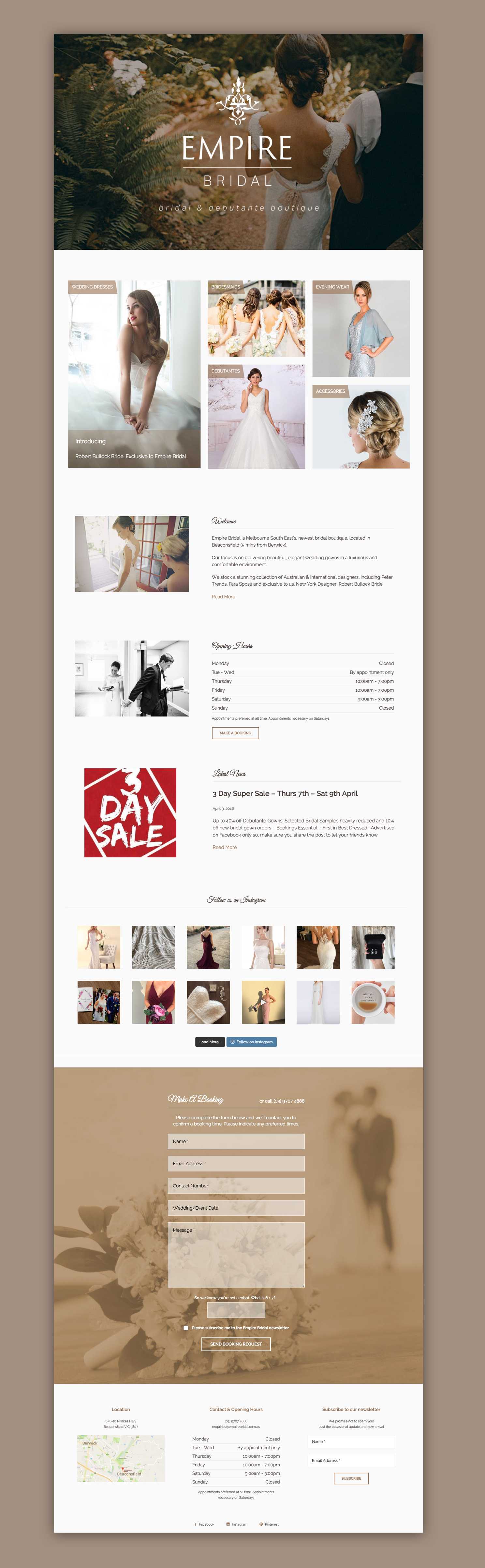Empire Bridal is a bridal & evening wear boutique founded and owned by my sister-in-law Michelle Beresford. Whilst the website has since been updated I was proud to help her set up the first website for her new business. If you know any brides-to-be send them on over to empirebridal.com.au 😉